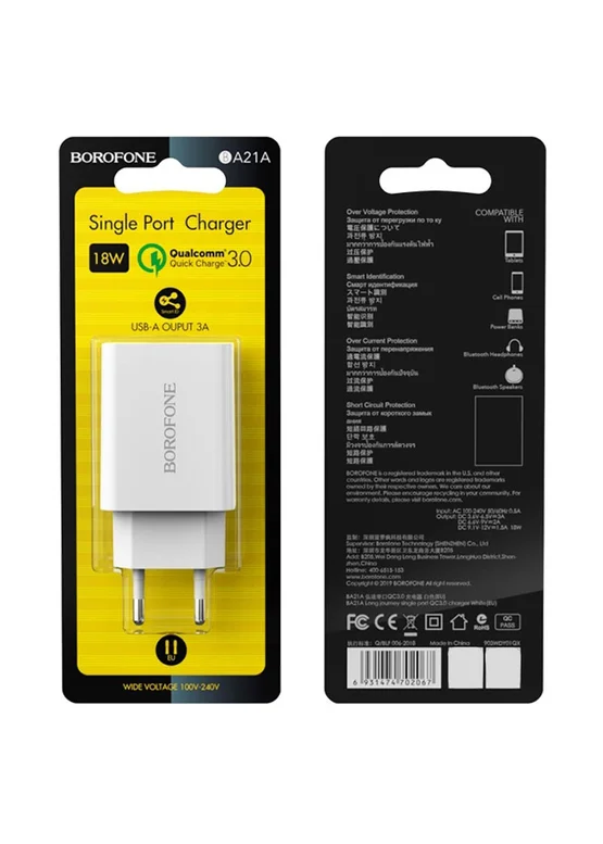С выходным напряжением 3A (18W) и поддержкой быстрой зарядки QC3.0 / QC2.0, FCP, AFC и других протоколов, обеспечивает эффективную зарядку вашего устройства.