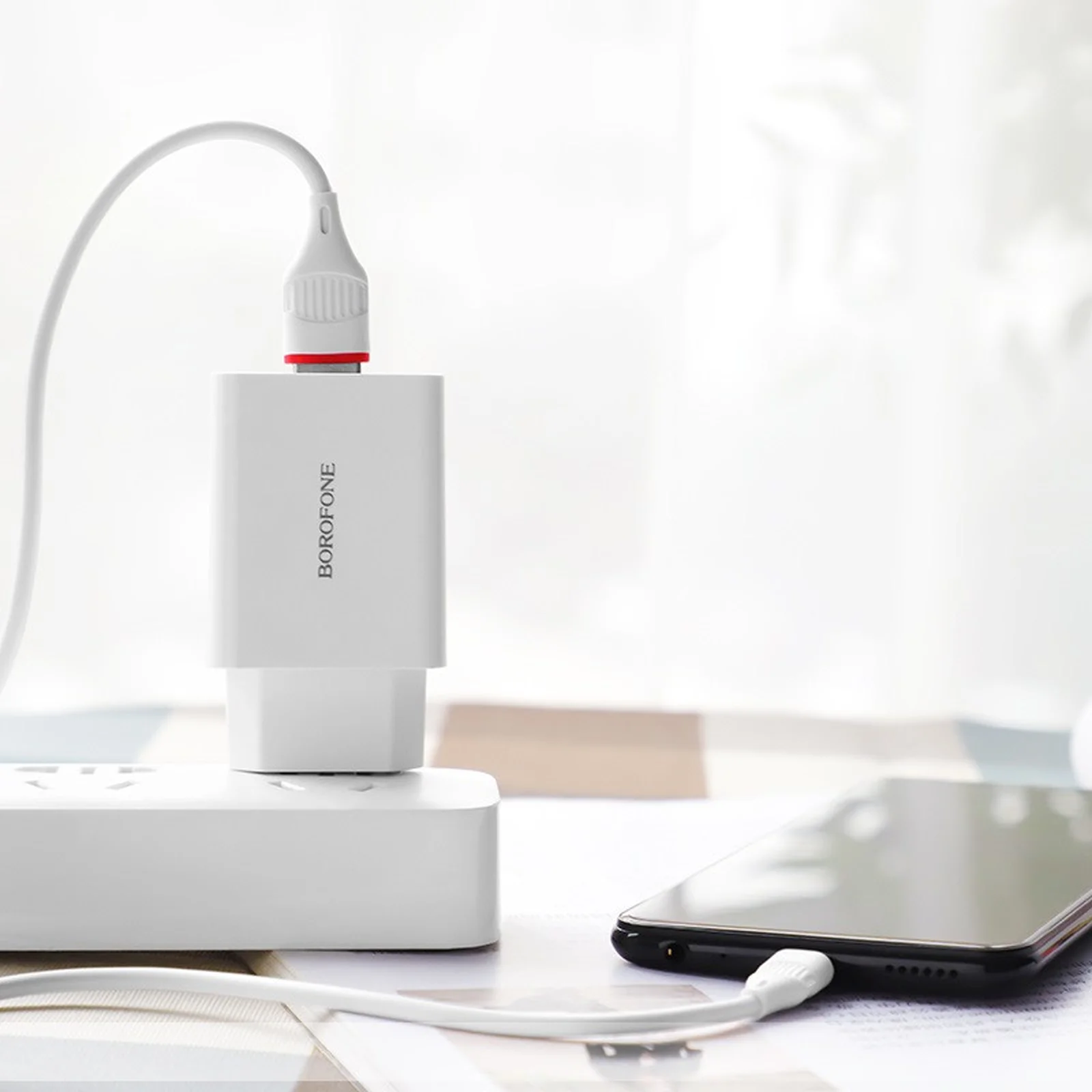 СЗУ Borofone BA21A Long journey QC3.0 (1USB/3A) + MicroUSB Белый