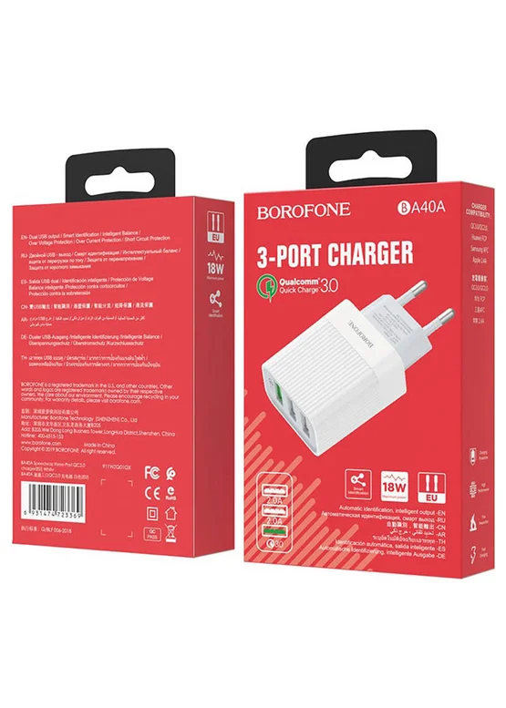 СЗУ Borofone BA40A Speedway three-Port QC3.0 Белый