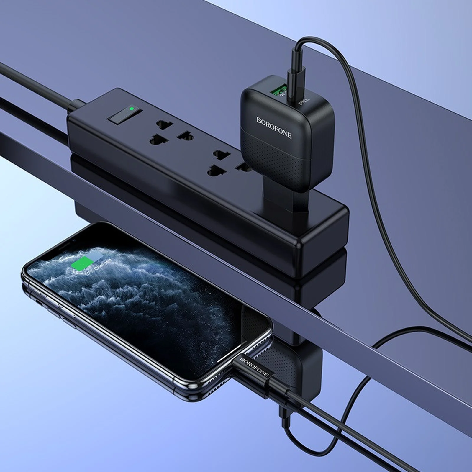 СЗУ Borofone BA46A PD 18W+QC3.0 (1USB/1Type-C/3A) Черный