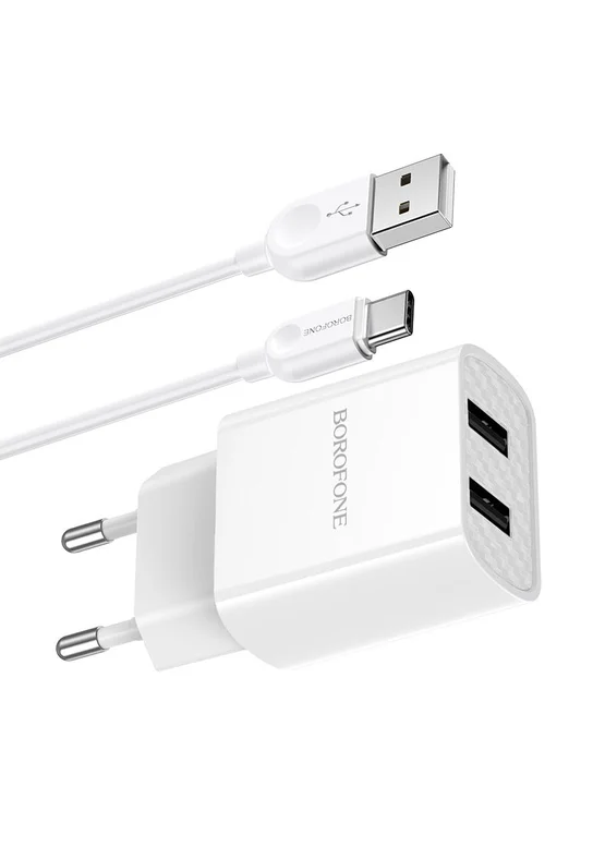 СЗУ Borofone BA53A Powerway (2USB/2.1A) + Type-C Белый