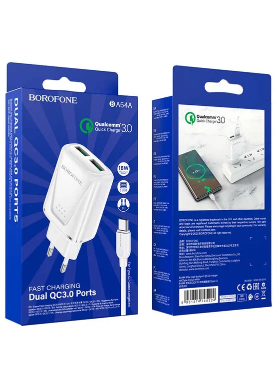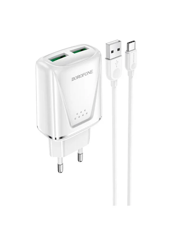 СЗУ Borofone BA54A Wide road QC3.0 (2USB) + Type-C White