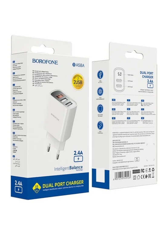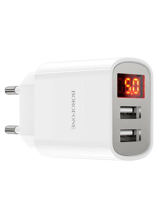 СЗУ Borofone BA58A with digital display 2.4A (2USB-A) White