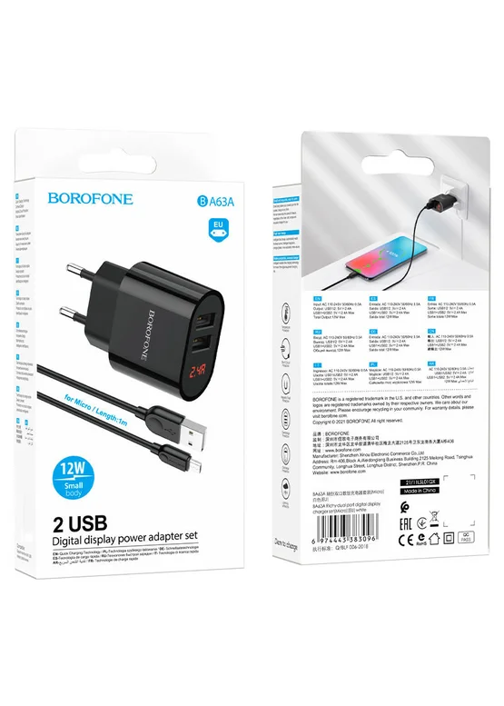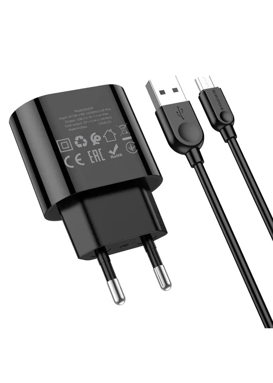 СЗУ Borofone BA63A Richy + MicroUSB Черный