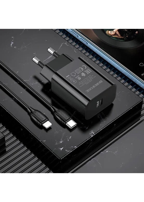 СЗУ Borofone BA65A Single port PD20W + Type-C + Lightning Черный