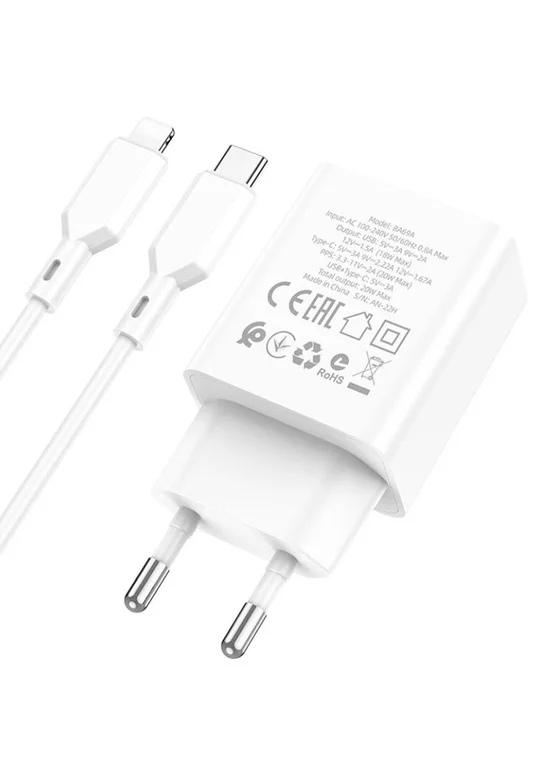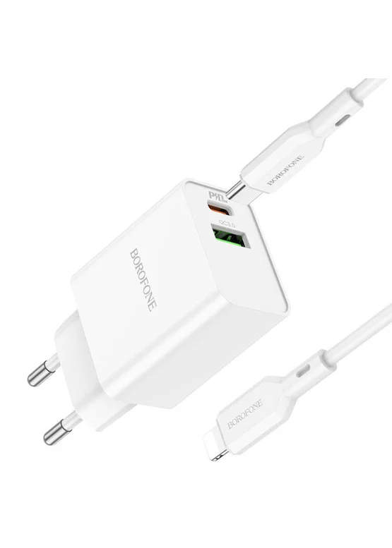 СЗУ Borofone BA69A Resource PD20W+QC3.0 (Type-C to Lighting) White