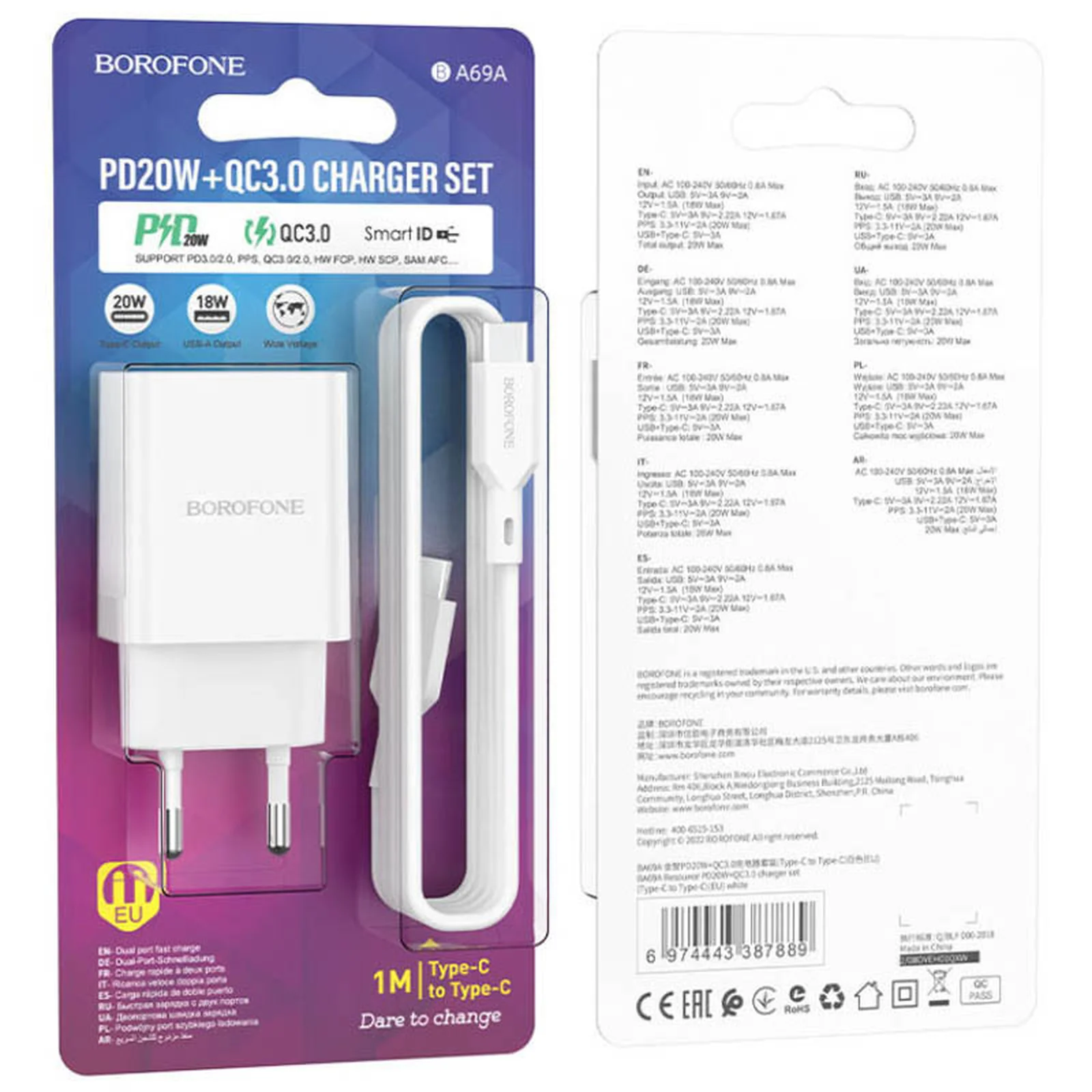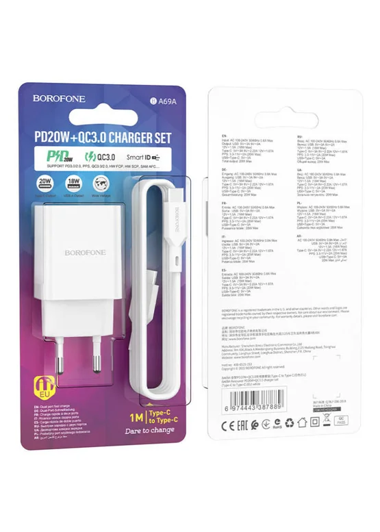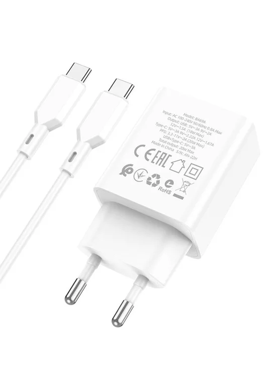 СЗУ Borofone BA69A Resource PD20W+QC3.0 (Type-C to Type-C) White