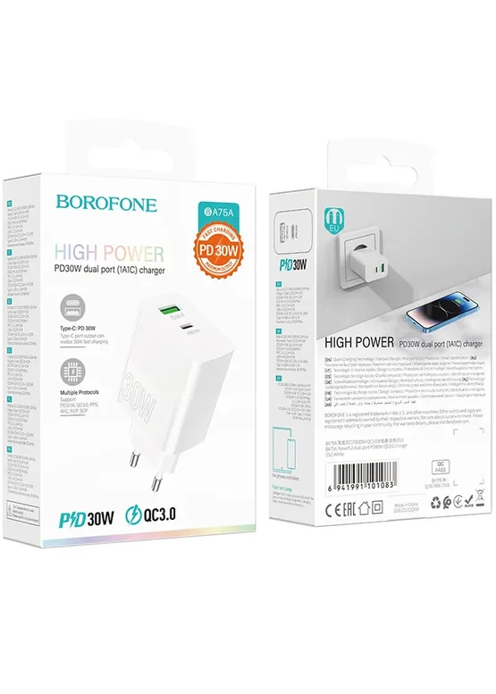 СЗУ Borofone BA75A PD30W+QC3.0 White