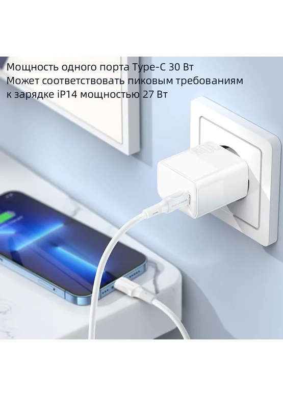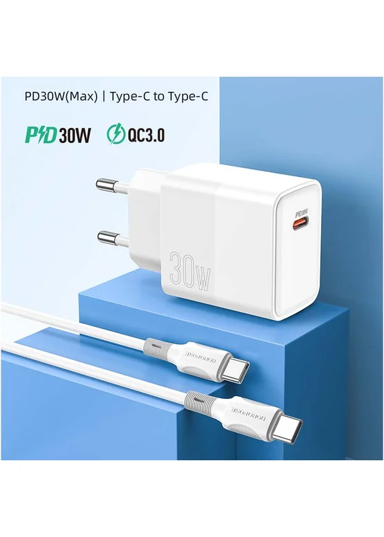 СЗУ Borofone BA77A PD30W+QC3.0 + Type-C + Type-C White