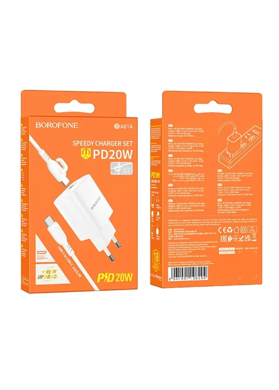 СЗУ Borofone BA81A PD20W (1USB-C) + Type-C to Type-C White