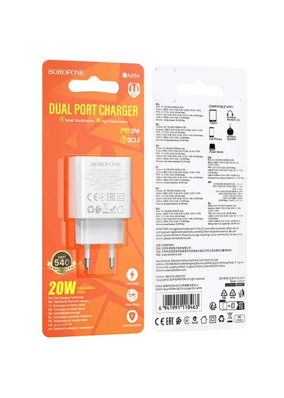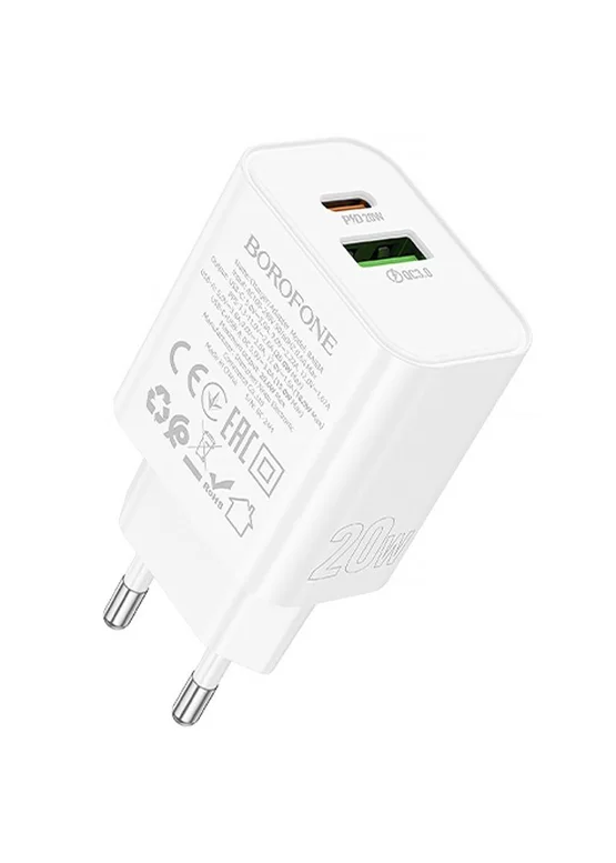СЗУ Borofone BA88A Navy PD20W+QC3.0 (1USB-A/1C) White