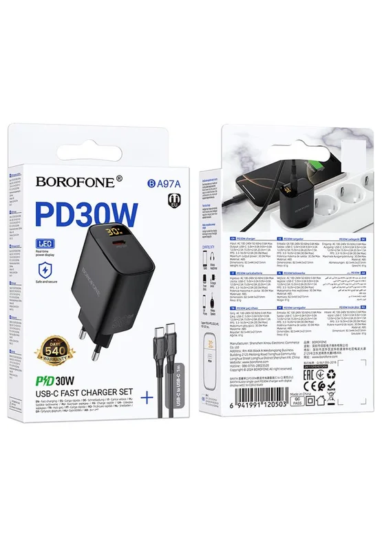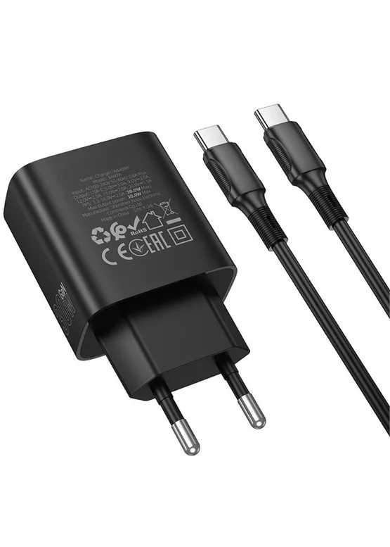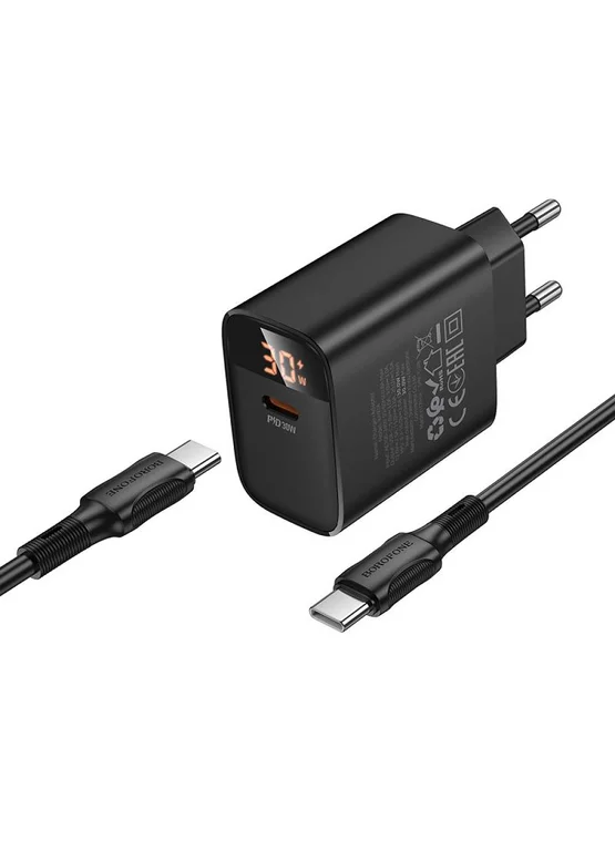 СЗУ Borofone BA97A PD30W (1USB-C) + кабель Type-C to Type-C Black