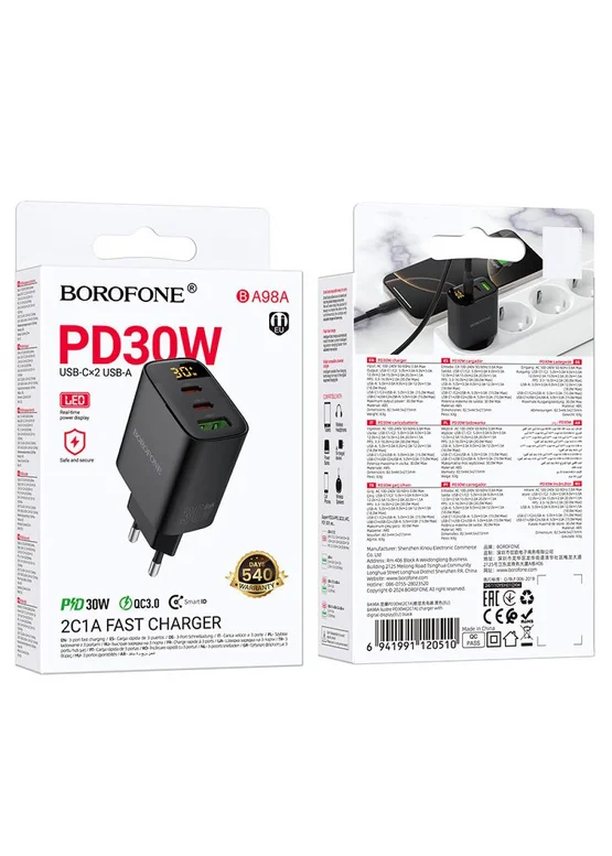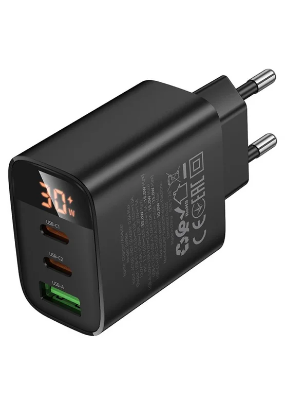 СЗУ Borofone BA98A Ilustre with digital display PD30W (1USB-A/2C) Black
