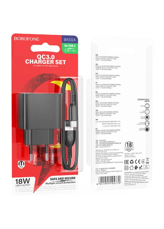 СЗУ Borofone BAS12A Erudite QC3.0 + Type-C Black