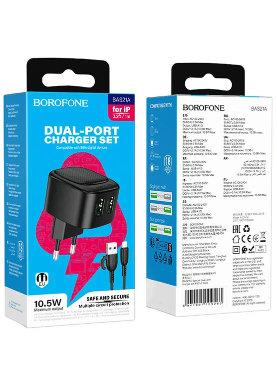 СЗУ Borofone BAS21A Special (2A) + Lightning Black