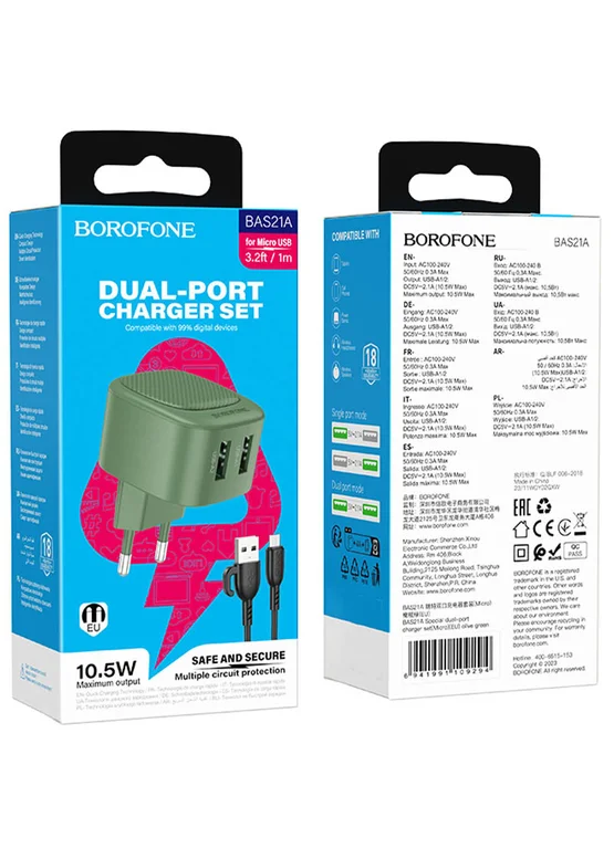 СЗУ Borofone BAS21A Special (2A) + Type-C Olive Green