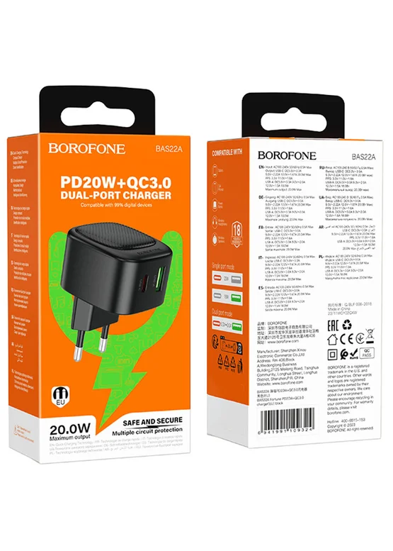 СЗУ Borofone BAS22A Fortune PD20W+QC3.0 (1C1A) Black