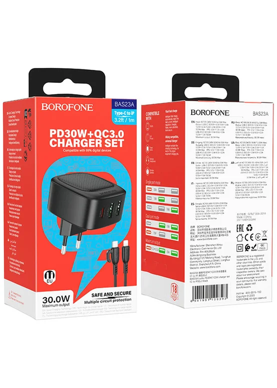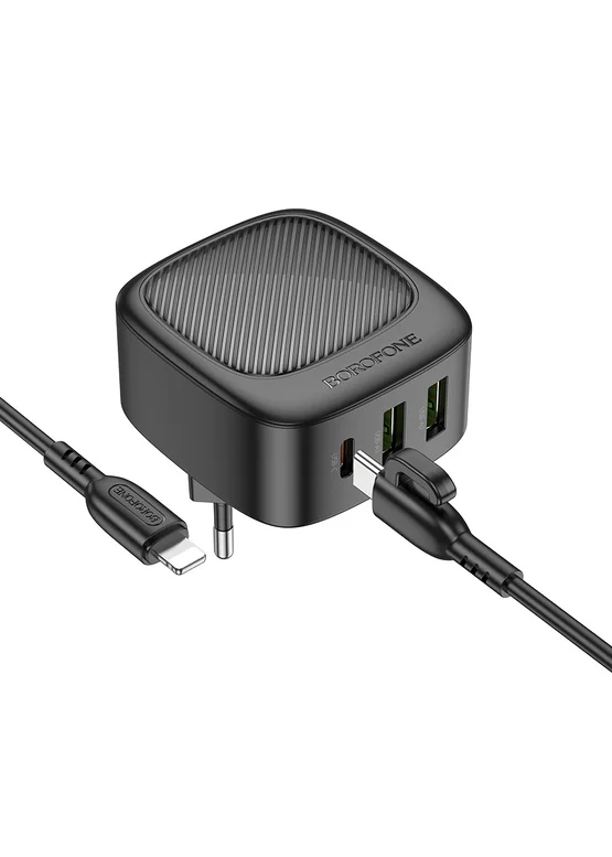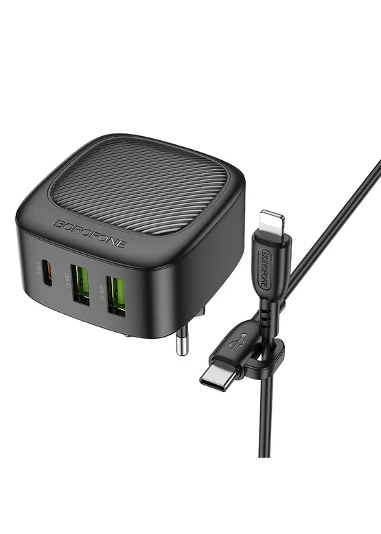 СЗУ Borofone BAS23A Lucky PD30W (1C2A) + Type-C to Lightning Black