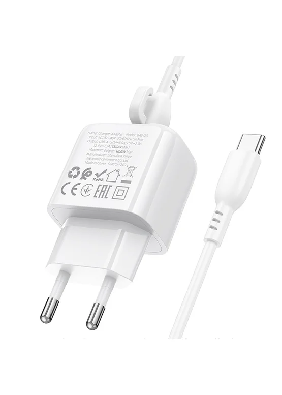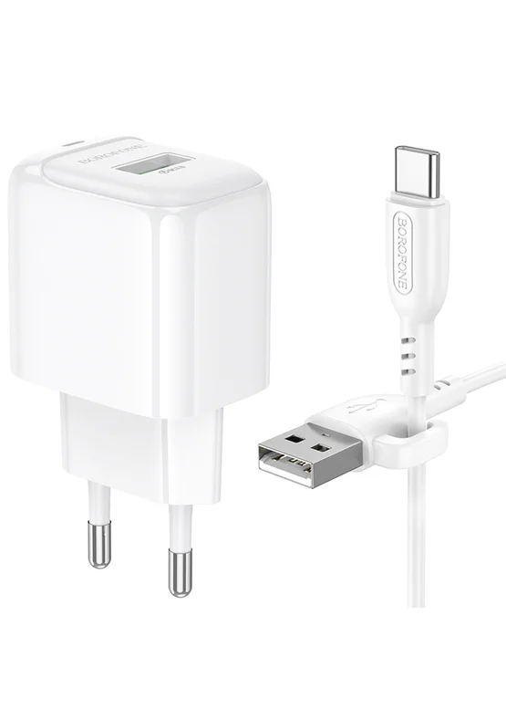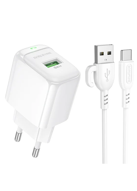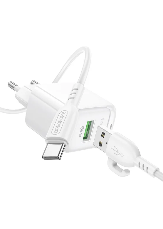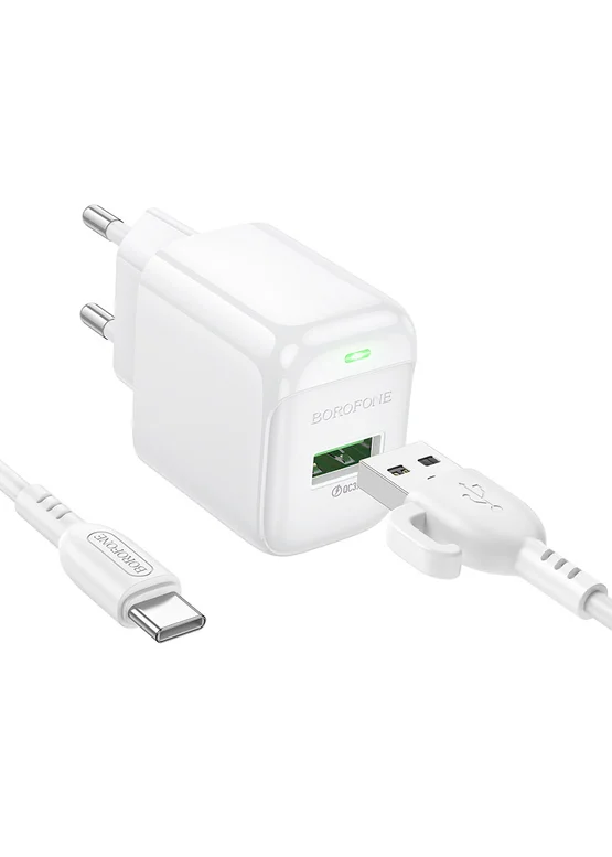 СЗУ Borofone BAS42A Potential QC3.0 (1USB-A) + Type-C White