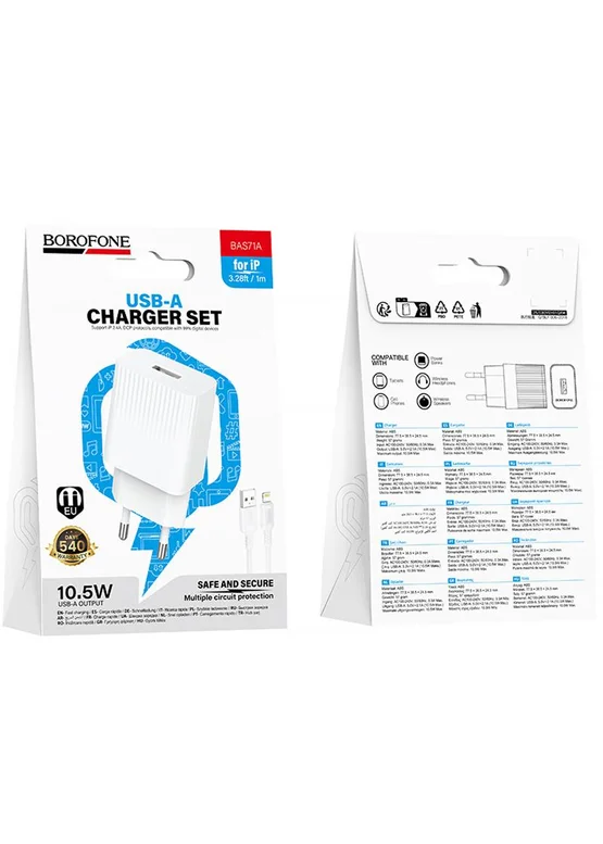 СЗУ Borofone BAS71A Source 10.5W (1USB-A) + кабель USB to Lightning White