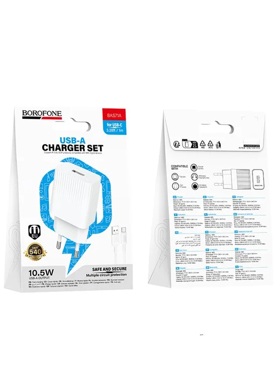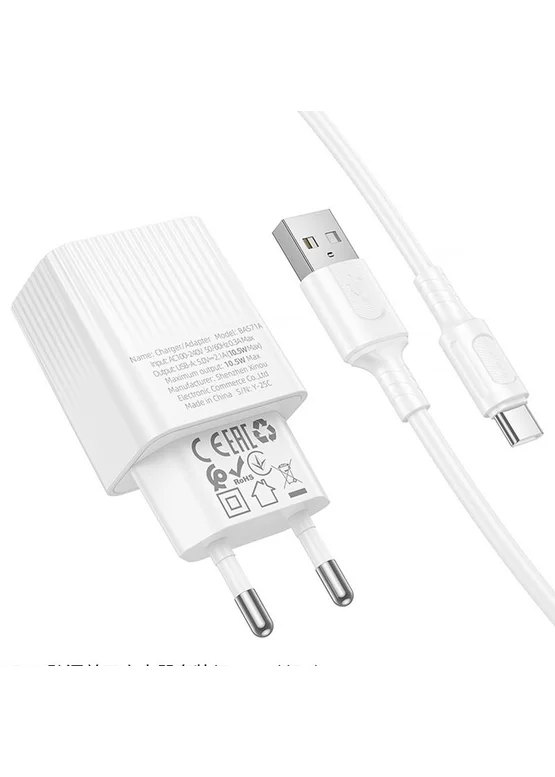 СЗУ Borofone BAS71A Source 10.5W (1USB-A) + кабель USB to Type-C White