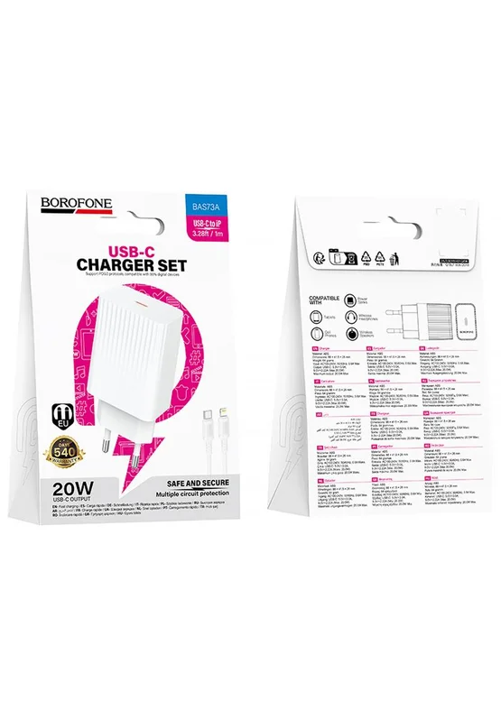 СЗУ Borofone BAS73A Source PD20W (1USB-C) + кабель Type-C to Lightning White