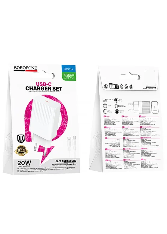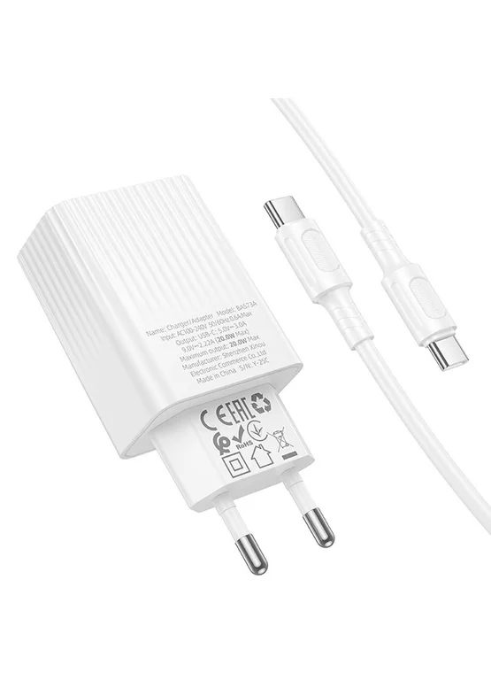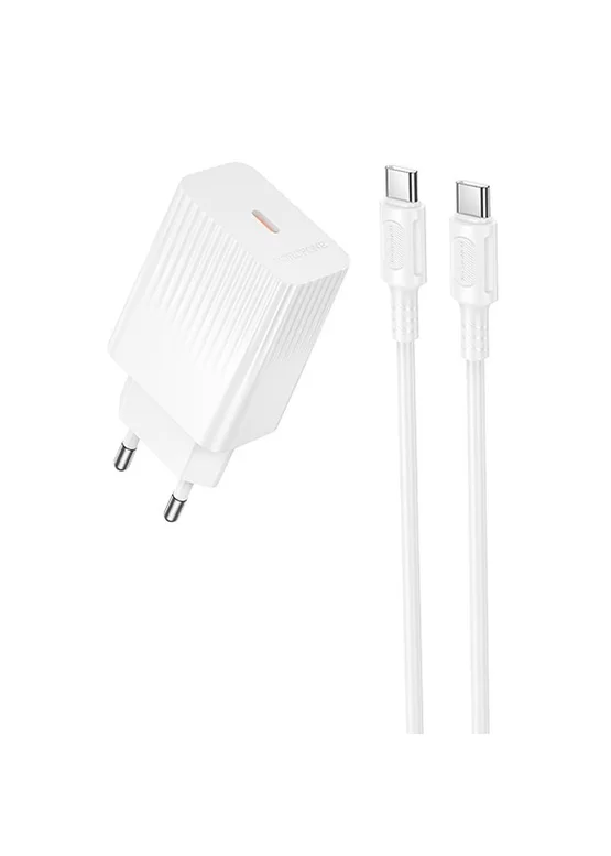 СЗУ Borofone BAS73A Source PD20W (1USB-C) + кабель Type-C to Type-C White