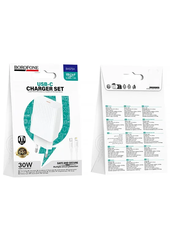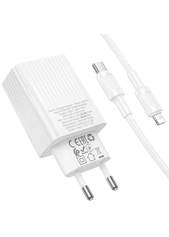 СЗУ Borofone BAS75A Source PD30W (1USB-C) + кабель Type-C to Lightning White