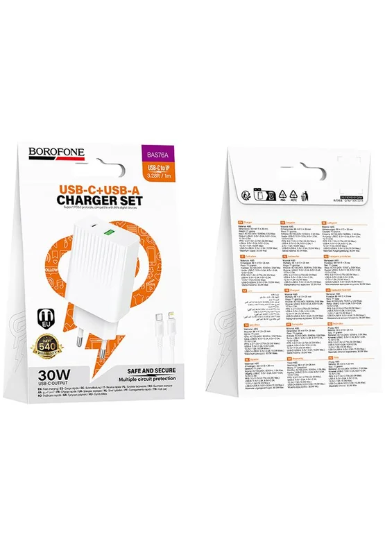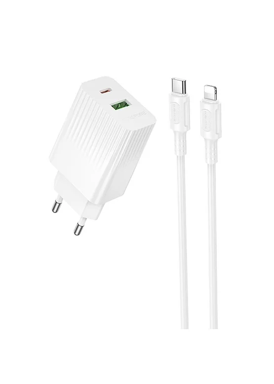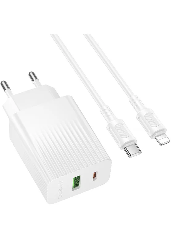 СЗУ Borofone BAS76A Source PD30W+QC3.0 (1USB-A/1C) + кабель Type-C to Lightning White