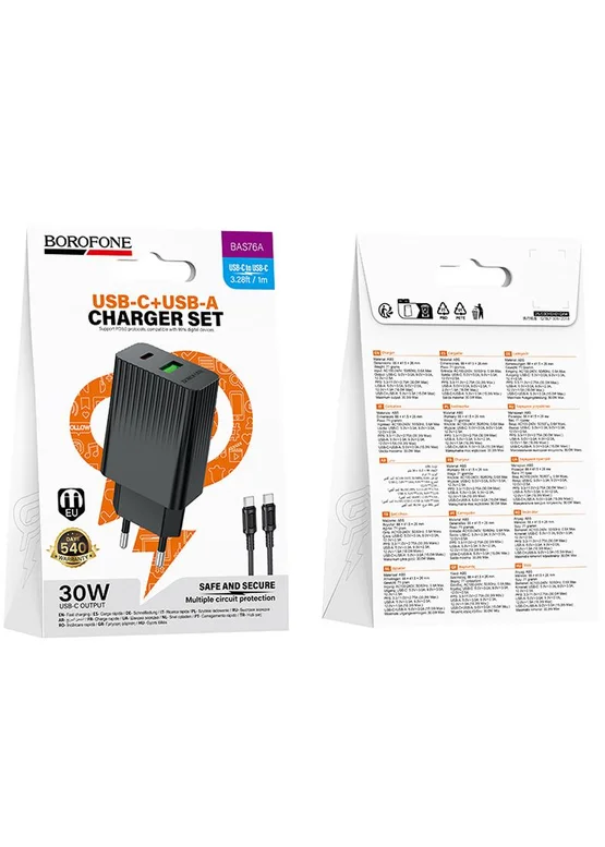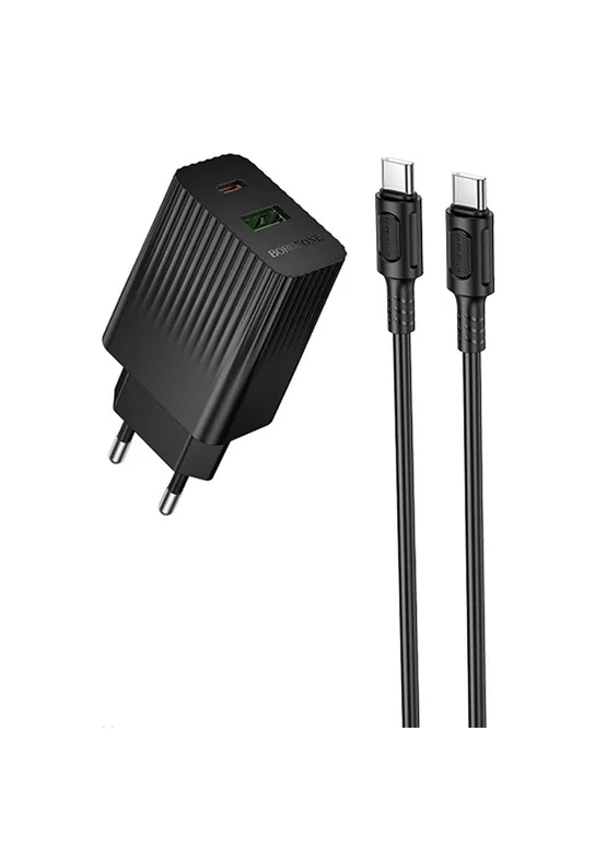 СЗУ Borofone BAS76A Source PD30W+QC3.0 (1USB-A/1C) + кабель Type-C to Type-C Black