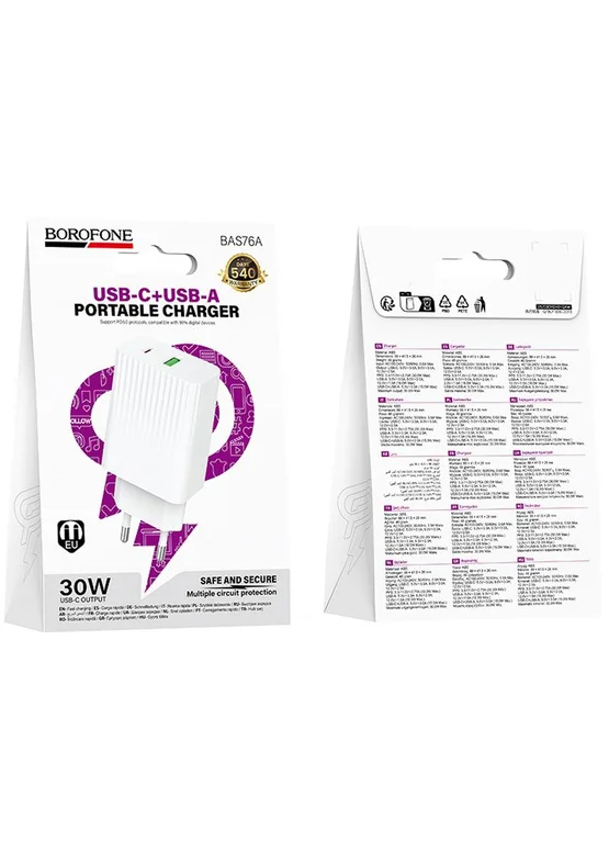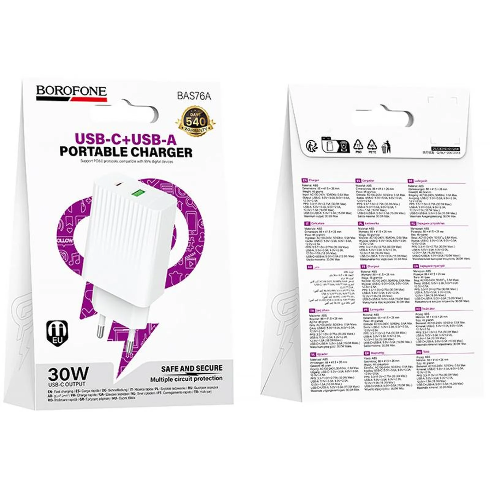 СЗУ Borofone BAS76A Source PD30W+QC3.0 (1USB-A/1C) White