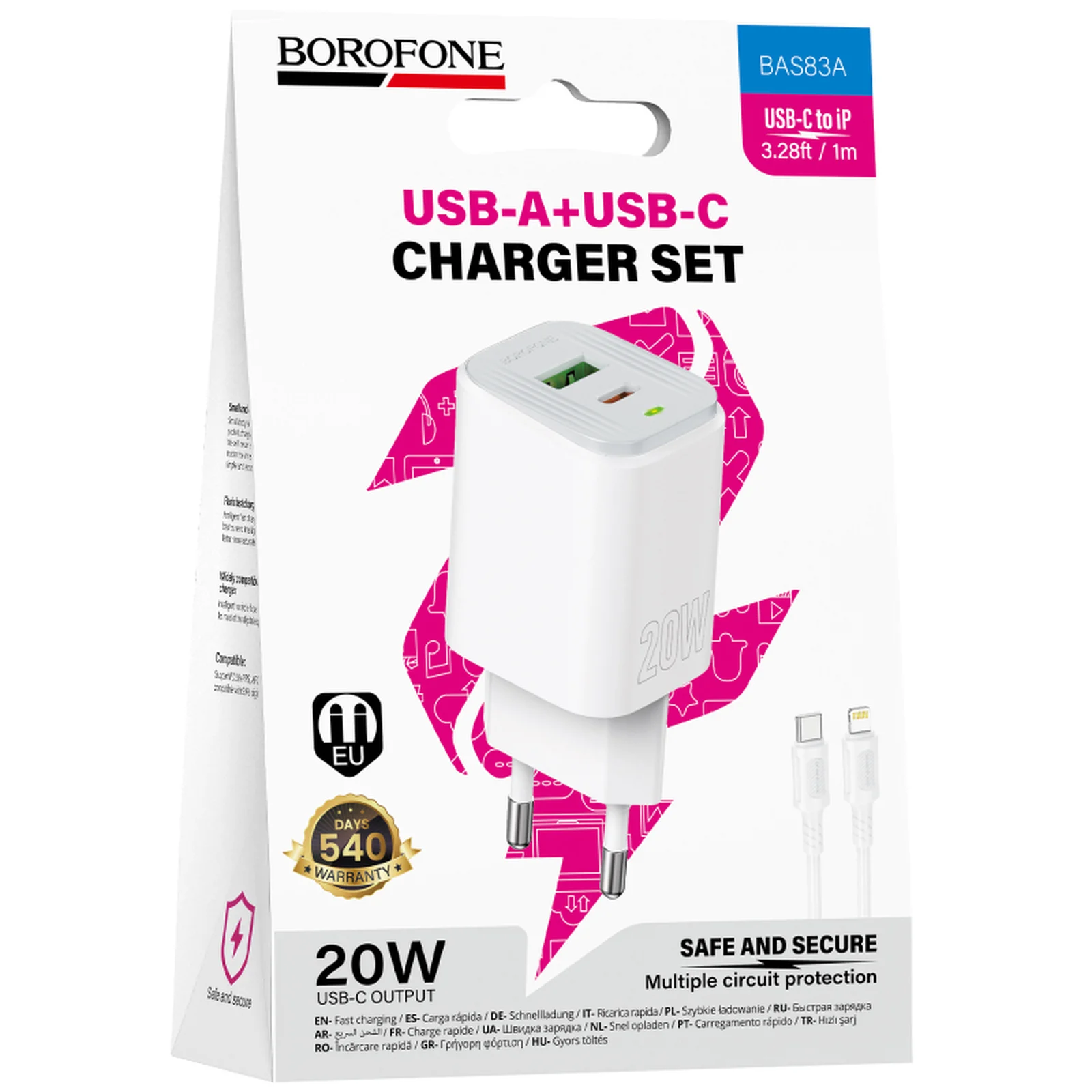 СЗУ Borofone BAS83A Star PD20W+QC3.0 (1USB-A/1C) + кабель Type-C to Lightning White