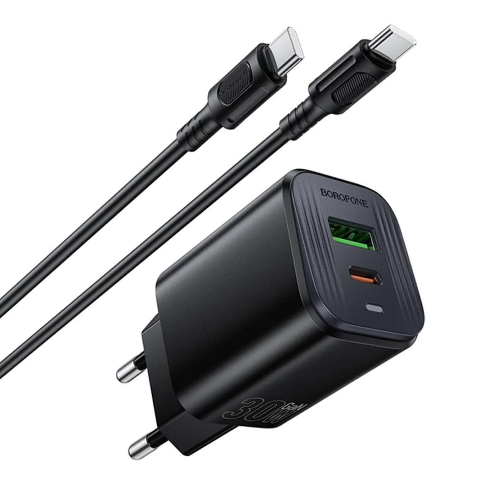 СЗУ Borofone BAS85A Star PD30W+QC3.0 (1USB-A/1C) + кабель Type-C to Type-C Black