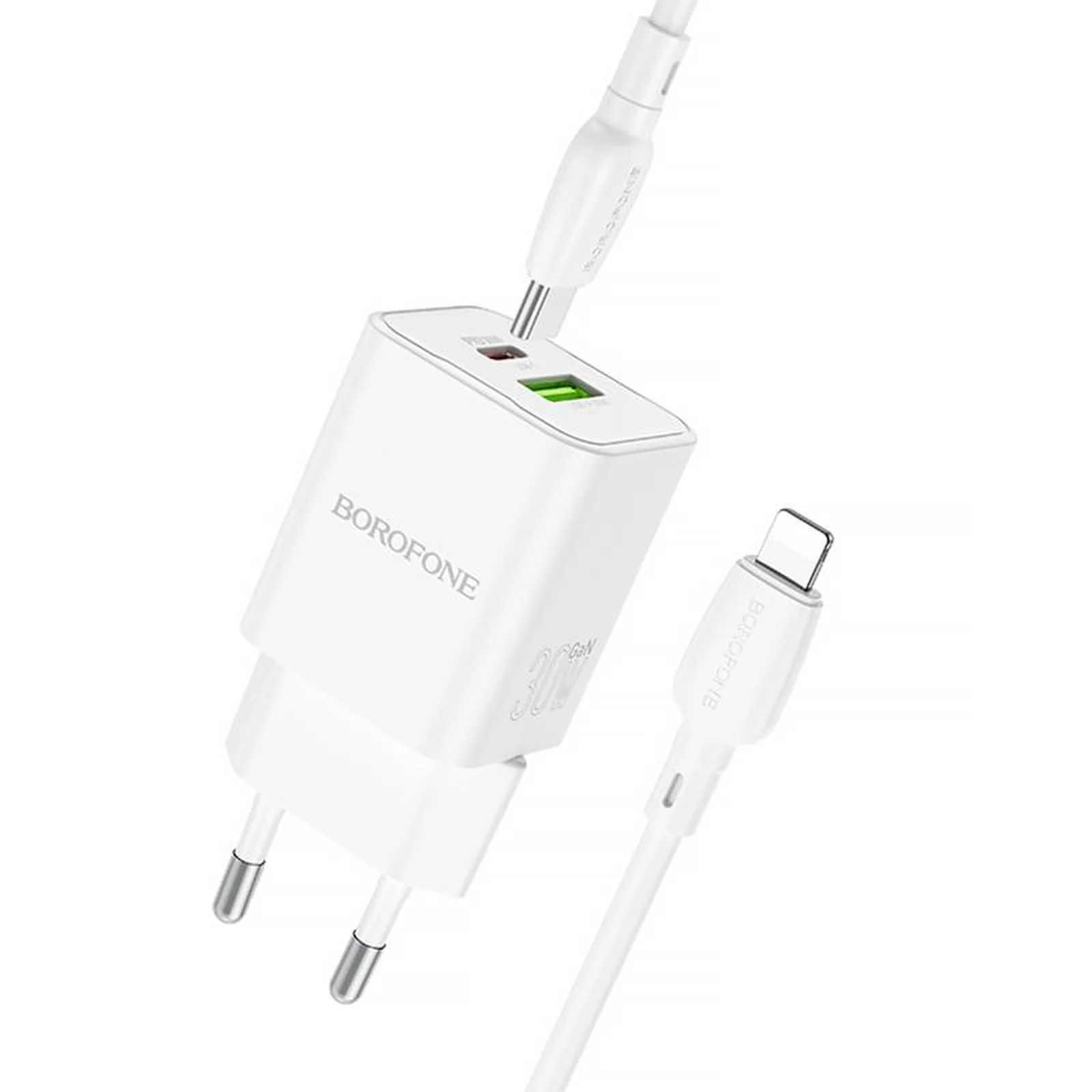 СЗУ Borofone BN14 Royal PD30W+QC3.0 (1USB-A/1C) + кабель Type-C to Lightning White