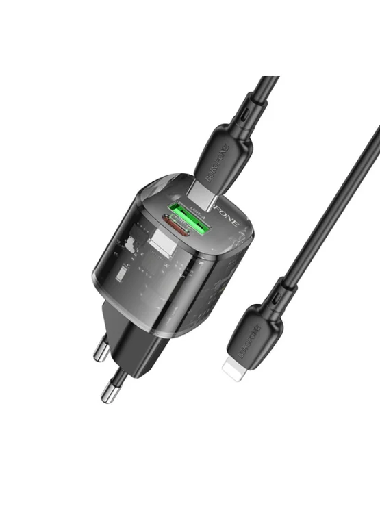 СЗУ Borofone BN17 Sunlight PD20W+QC3.0 (1USB-A/1C) + кабель Type-C to Lightning Transparent black