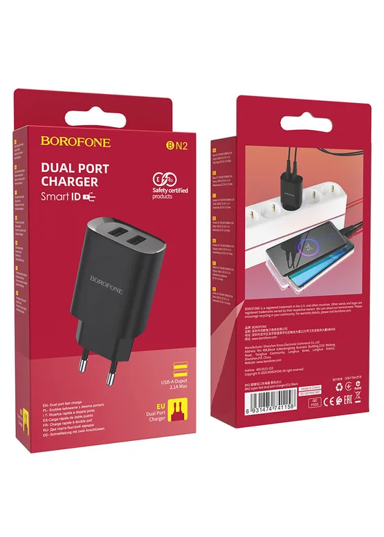 СЗУ Borofone BN2 (2USB/2.1A) Черный