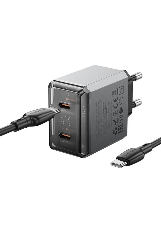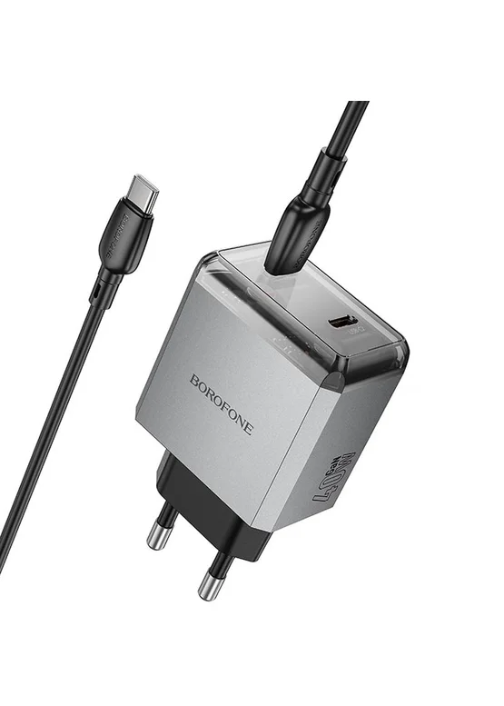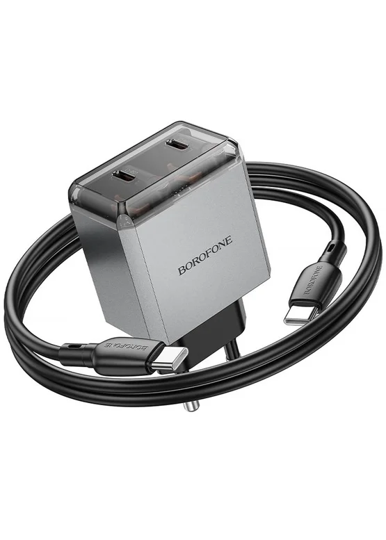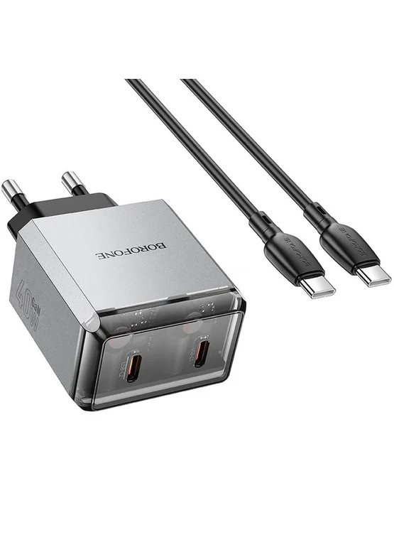 СЗУ Borofone BN21 Lena PD40W+QC3.0 (2USB-C) + кабель Type-C to Type-C Metal gray