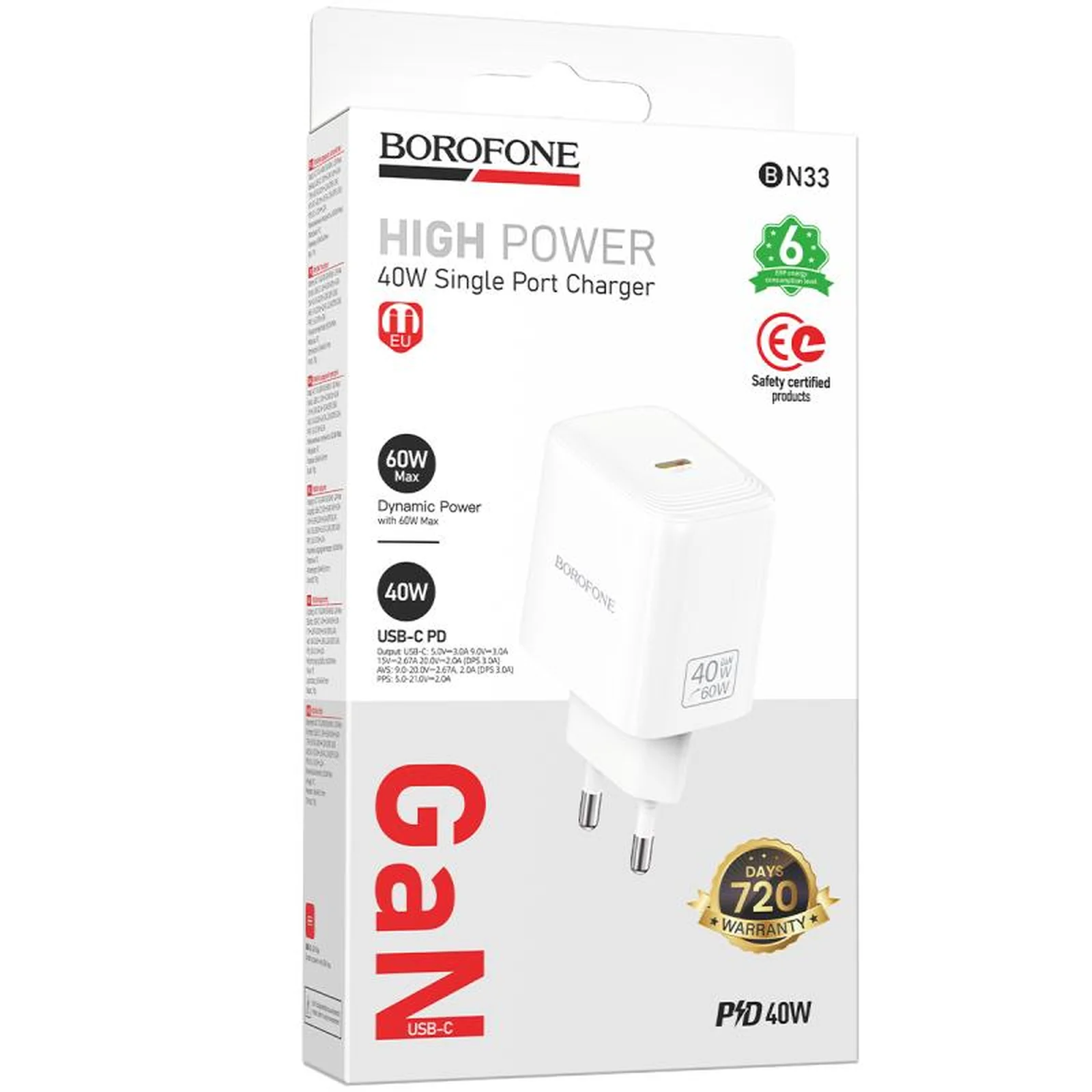 СЗУ Borofone BN33 Fuente PD40W (1USB-C) White