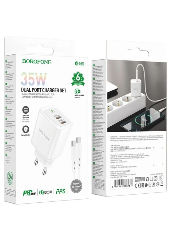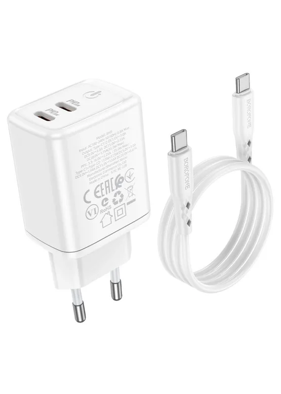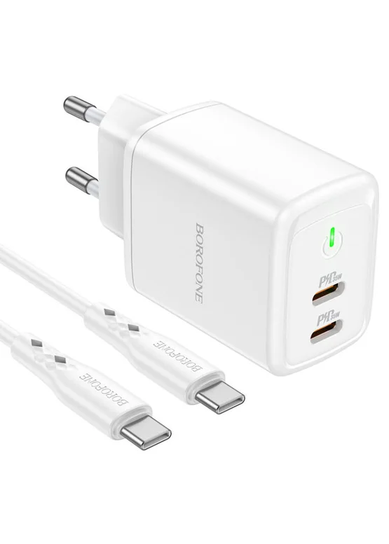 СЗУ Borofone BN9 PD35W (2Type-C) + Type-C to Type-C White