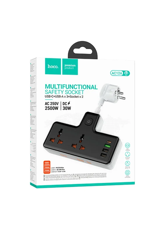 СЗУ Hoco AC12A Reise (PD30W/1C3A) +Socket Black
