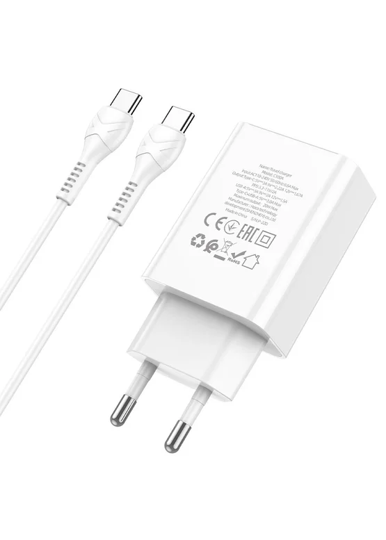 СЗУ HOCO C100A PD20W+QC3.0 + Type-C to Type-C White
