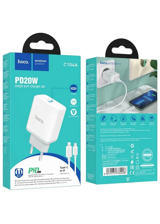 СЗУ Hoco C104A PD 20W Type-C to Lightning White