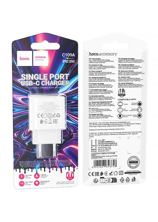 СЗУ Hoco C109A Fighter PD20W (1USB-C) White