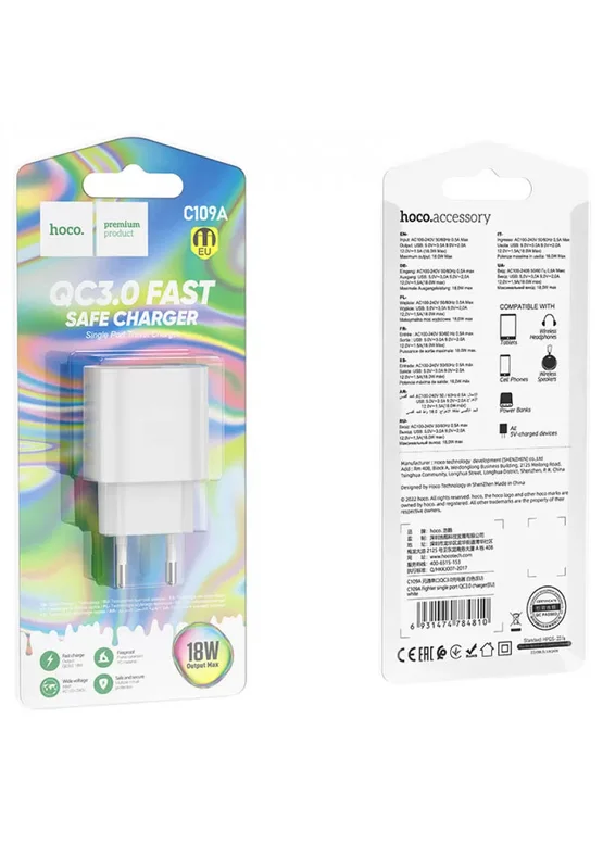 Если ваш девайс поддерживает функцию быстрой зарядки QC 3.0, то он будет заряжаться в 2 раза быстрее