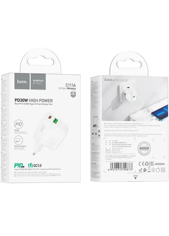 СЗУ Hoco C111A PD 30W+QC3.0 White