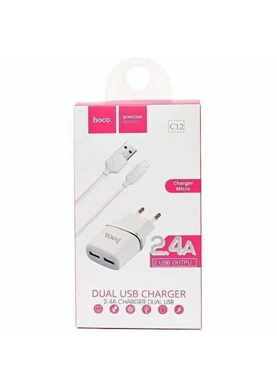СЗУ Hoco C12 Charger + Cable (Micro) 2.4A 2USB white