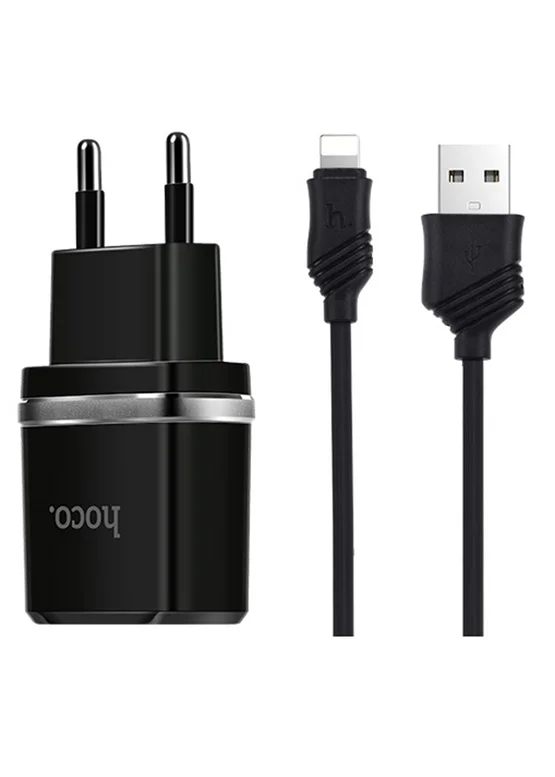 СЗУ Hoco C12 Dual USB Charger 2.1A (+кабель Lightning) (Черный)