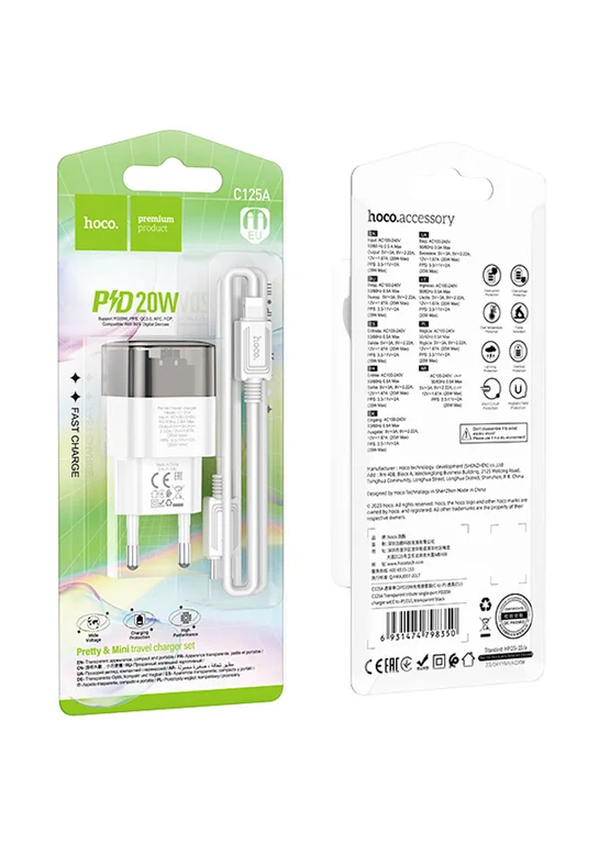 СЗУ Hoco C125A Transparent 1C PD20W + Type-C to Lightning Transparent black