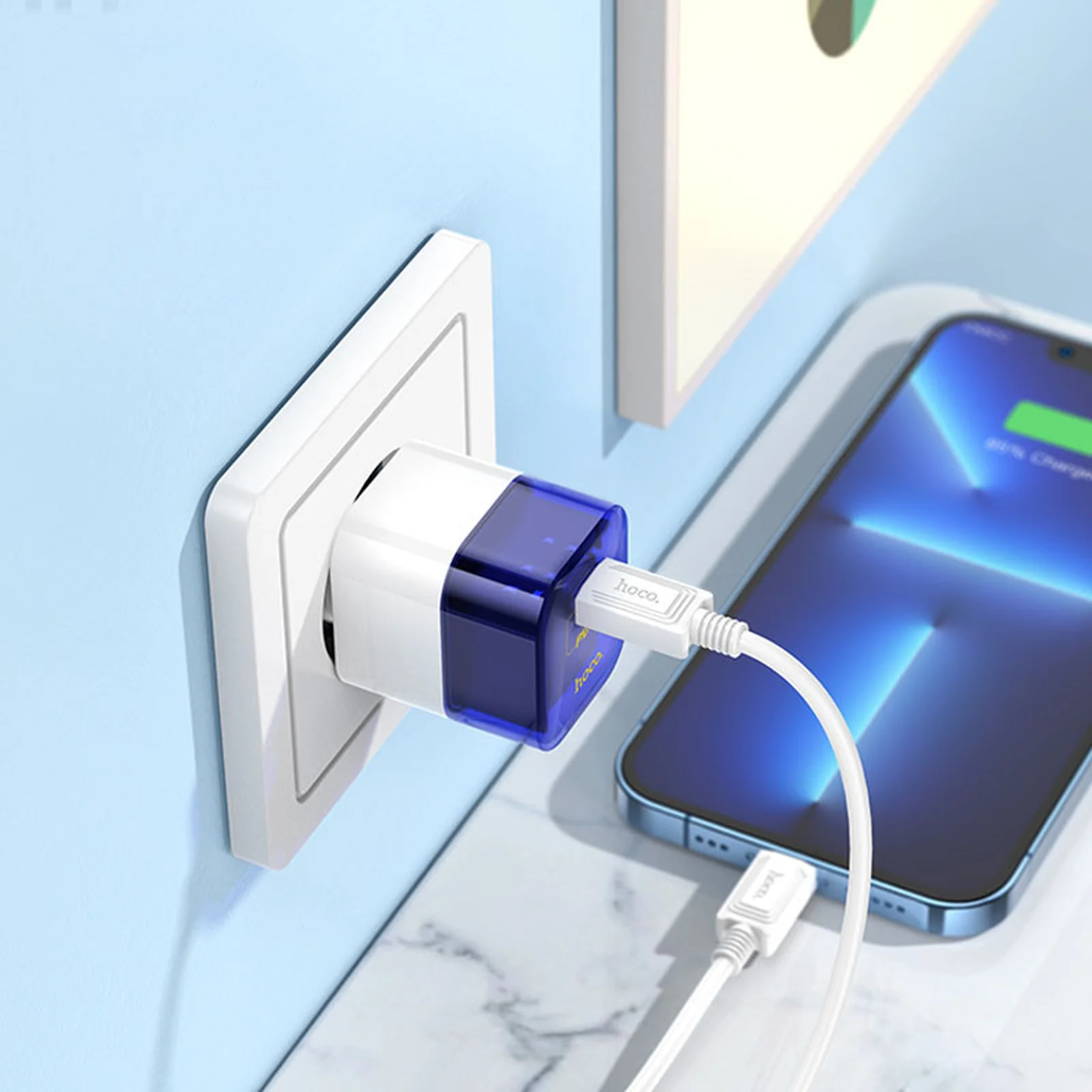 СЗУ Hoco C125A Transparent 1C PD20W + Type-C to Lightning Transparent blue