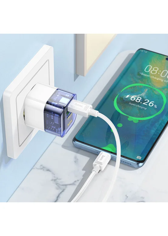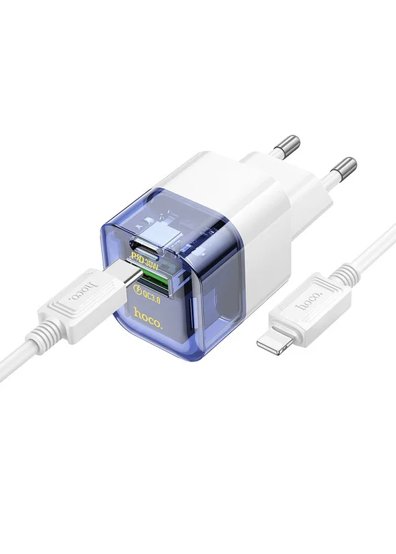СЗУ Hoco C131A Platium PD30W+QC3.0 + Type-C to Lightning Transparent blue